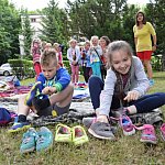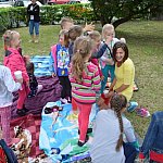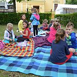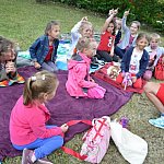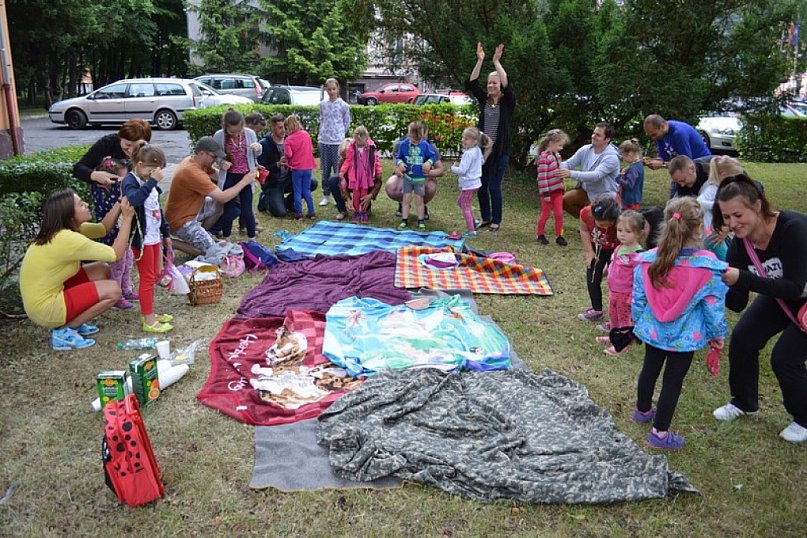 Tabun dzieci z koszykami i kocami piknikowymi, wśród okrzyków o pierwszeństwo na kocu, postanowił opanować trawnik. Ów trawnik okazał się być Stumilowym Lasem, a dzieci z pomalowanymi twarzami, pozamieniały