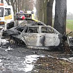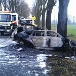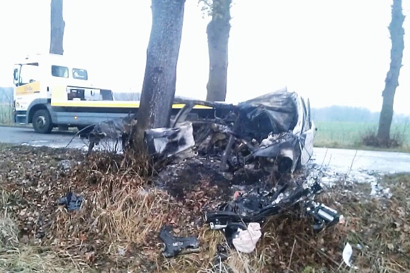 Dziś (28.11), około godziny 9:00, dyżurny Państwowej Straży Pożarnej w Brzegu otrzymał zgłoszenie o płonącym pojeździe tuż przy wiadukcie kolejowym w Mąkoszycach. Kierowca osobówki uderzył w drzewo, po czym auto stanęło w płomieniach.