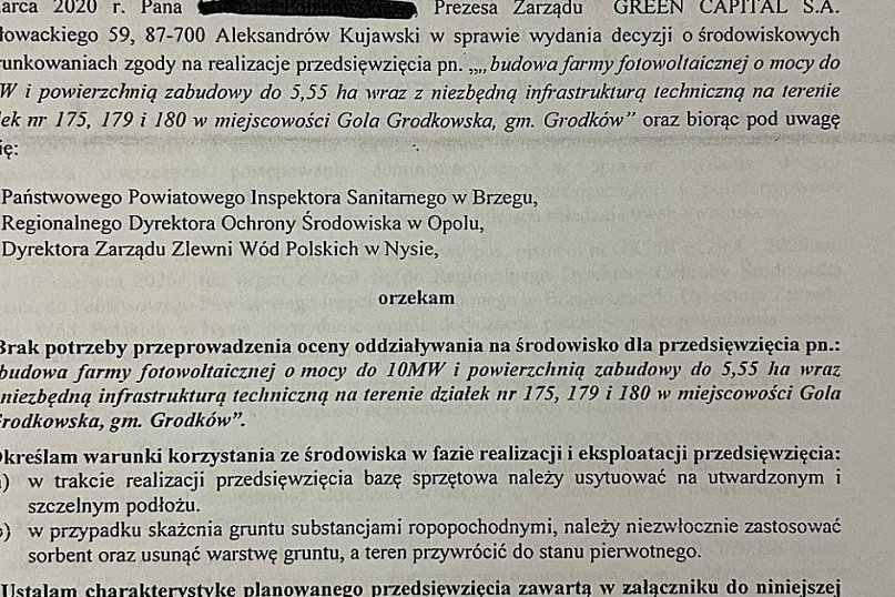 Decyzje o uwarunkowaniach środowiskowych wydane na farmy fotowoltaiczne w Grodkowie - ponad 600 ha