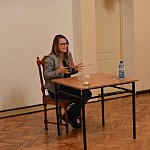 Olga Rudnicka - młoda, utalentowana autorka powieści kryminalnych z intrygującą dawką czarnego humoru była gościem w Klubie 1. Pułku Saperów w Brzegu, w dniu 26 listopada 2018 roku. Panią Olgę i uczestników spotkania powitała serdecznie kierownik klubu - pani Jana Koronkiewicz.