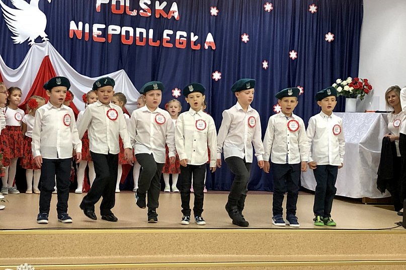 Dnia 10 listopada w Przedszkolu nr 4 w Brzegu zgodnie z tradycją obchodziliśmy 102 rocznicę odzyskania przez Polskę Niepodległości. Pani dyrektor Albina Łącka przywitała