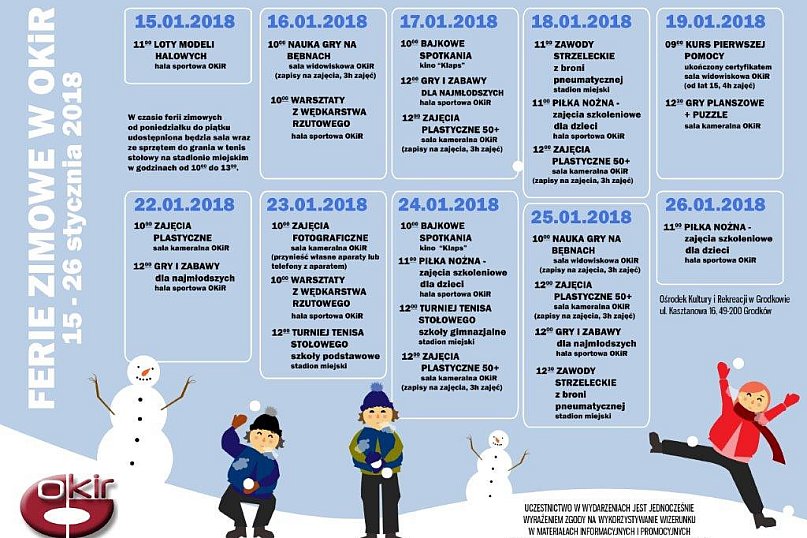 Już w przyszły poniedziałek w województwie opolskim ruszają ferie zimowe. Przez dwa tygodnie od 15 do 28 stycznia uczniowie odpoczną od nauki. Umilenie wolnego czasu najmłodszym w gminie Grodków zajmą się Biblioteka w Grodkowie i filie w Kolnicy i Gnojnej, Ośrodek Kultury i Rekreacji i Izba