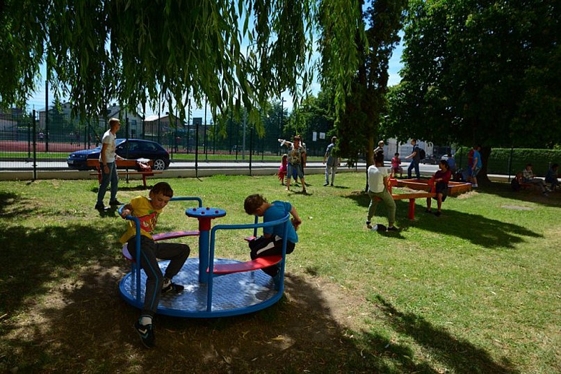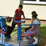 Radośnie i bezpiecznie. A to dzięki Telewizji Polskiej SA z siedzibą w Warszawie i Starostwu Powiatowemu w Brzegu. Dziękujemy! Dzieci, Grono Pedagogiczne, Dyrekcja Specjalnego Ośrodka Szkolno Wychowawczego w Grodkowie.