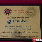 W ramach współpracy firmy Donaldson w jednostkami Ochotniczych Straży Pożarnych w powiecie brzeskim, w poniedziałkowe (25.01.2021) południe, druhom Ochotniczej Straży Pożarnej w Dobrzyniu (gm. Lubsza) przekazano sprzęt AGD - pralkę automatyczną Amica i detergenty.