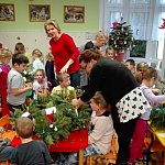 W piątek 9 grudnia 2016 roku już od samych drzwi naszego przedszkola unosił się przepiękny zapach igliwia. W tym dniu gościliśmy panią Agatę Nalewaj, zajmującą się rękodziełem artystycznym, która poprowadziła warsztaty robienia stroików bożonarodzeniowych.
