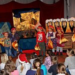 I to nie z byle jakiej, ale z takiej o "Ali Babie i czterech rozbójnikach"! Tak, czterech, nie czterdziestu, bo jest niż demograficzny. A tak naprawdę to rozbójników było siedemdziesiąt - małoletnich i bardzo rozkrzyczanych, dzielnie ogarniały ich dwie panie z Wędrownego Teatru Lalek