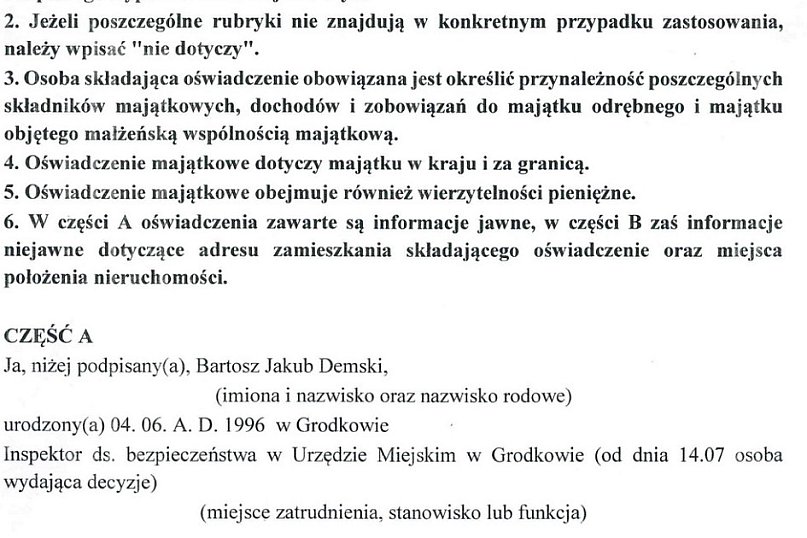 Gdyby ktoś nie znał Bartosza Demskiego i czytał tylko to, co on wypisuje w mediach społecznościowych o sobie samym, to mógłby pomyśleć, że mamy w Grodkowie do czynienia z urzędnikiem-wolontariuszem, niemal świętym w garniturze, a czasem w strażackim mundurze. Człowiekiem, który z poświęceniem pracuje w magistracie za grosze, a tak naprawdę utrzymuje się z innej, ważniejszej działalności. Problem w tym, że gdy zajrzymy do jego oświadczeń majątkowych, obraz bohatera zderza się z rzeczywistością i trzeszczy jak stara kanapa czekająca na ekstrakcyjne pranie. Szczegóły i historię różnych dochodów oraz kłamstw Demskiego opisujemy w poniższym felietonie.