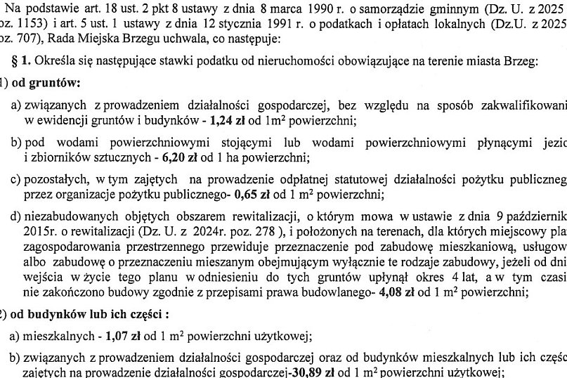 Mieszkańców Brzegu czekają aż 20-procentowe podwyżki podatków od nieruchomości. Burmistrz Wioletta Jaskólska-Palus przygotowała projekt uchwały, który zakłada wzrost wszystkich stawek od 1 stycznia 2026 roku. Dokument jest już opublikowany na stronie urzędu i został skierowany do obowiązkowych konsultacji społecznych. Teraz wszystko w rękach radnych, to oni zdecydują 30 października, czy przyjmą propozycję burmistrz Jaskólskiej-Palus.
