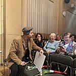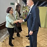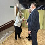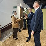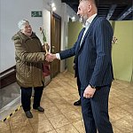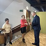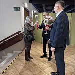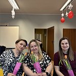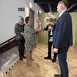 składając paniom życzenia i wręczając symboliczne tulipany.