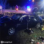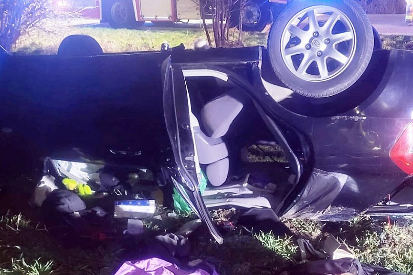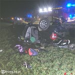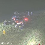Groźnie wyglądający wypadek w gminie Grodków. Kierowca samochodu osobowego stracił panowanie nad pojazdem, zjechał z drogi i dachował w polu. Mężczyzna z obrażeniami ciała trafił do szpitala.