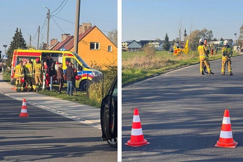 Groźny wypadek w Łukowicach Brzeskich. Mężczyzna spadł z drzewa i został przygnieciony przez konar. Na miejsce wezwano śmigłowiec LPR.