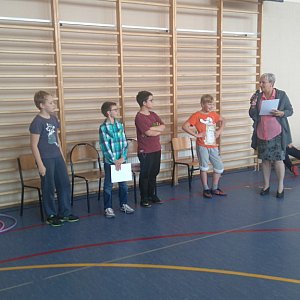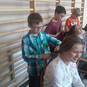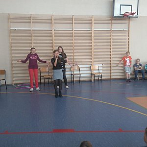 Na sali gimnastycznej chłopcy z poszczególnych klas rywalizowali o tytuł najlepszego, uczestnicząc w sześciu konkurencjach: kręcenie hula hop, obranie jabłka, zaplatanie warkocza, wiązanie krawata, odbijanie piłki głową, a także odpowiadali na pytania. Najwięcej problemu przysporzyła chłopcom konkurencja z zaplataniem warkocza oraz obieraniem jabłka. Pozostałe zadania były łatwiejsze. Wszyscy walczyli zgodnie z zasadami fair play. Największą liczbę punktów i tytuł " SUPER CHŁOPAKA" otrzymał uczeń klasy VI Łukasz Łumas. Serdecznie gratulujemy!!!
