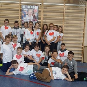 17 października uczniowie naszej oraz najstarsza grupa przedszkolaków z Kościerzyc brala udział w ogólnopolskiej PRÓBIE BICIA REKORDU GUINNESS`A w resuscytacji krążeniowo -oddechowej organizowanej przez Wielką Orkiestrę Świątecznej Pomocy. Wszyscy zdajemy sobie sprawę, jak ważna jest taka umiejętność. Uczniowie nasi już w poprzednich dwóch latach barli udzia w podobnej akcji, ale ten był wyjątkowy, gdyż nie tylko przypomniał dzieciom, w jaki sposób mogą pomóc osobie potrzebującej, ale przystąpiliśmy do próby na skalę światową.