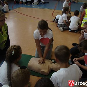 wiczeń na fantomach czuwali nauczyciele, pielęgniarka pani W. Czajka, wykwalifikowani ratownicy ze straży pożarnej- pani K. Ubermann, M. Kukliński i P. Medyński. Na 14 fantomach dzieci ćwiczyły prawidłowe uciśnięcia klatki piersiowej, oddechu i przyznać należy, że robiły to nie tylko z wielkim zaangażowaniem, ale też okazało się, że bardzo poprawnie. Każdy z nich poczuł się wyjątkowo, jak prawdziwy ratownik i już możemy być pewni, że w chwilach zagrożenia życia nasi uczniowie będą wiedzieć, co należy zrobić w nagłym wypadku.