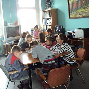 Na zakończenie "Ferii w bibliotece" spotkała nas jeszcze jedna atrakcyjna niespodzianka. Był to wyjazd do Wrocławia do Ossolineum na zajęcia zatytułowane: "Kiedy zapadnie zmierzch czyli o tym jak kiedyś bawiły się dzieci w szlacheckim dworku". Zajęcia rozpoczęła prezentacja ilustrująca jak i przy pomocy czego bawiły się dzieci na dworach. W czasach, kiedy nie było telewizji, komputera, ani gier komputerowych, dzieci wykorzystywały swoją własną fantazję i pomysłowość i same wymyślały sobie zabawy. Niektóre z nich przetrwały do dziś, jest to znana wszystkim ciuciubabka, berek czy latawiec. Chłopcy bawili się cynowymi żołnierzykami, a dziewczynki lalkami, które najczęściej były z porcelany i materiału, często były to zabawki robione własnoręcznie. Lecz najpopularniejsze były i są do dziś, ponadczasowe kukiełki, dlatego następną częścią zajęć były warsztaty, na których dzieci tworzyły swoje własne postacie - kukiełki. Wystarczyła drewniana łyżka kuchenna, skrawki tkanin i bibułki, aby w mig zadziałała dziecięca wyobraźnia. Zrobione samodzielnie kukiełki natychmiast dostały imiona i spontanicznie ożywały w rękach sprawnych animatorów.