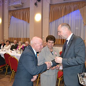 Aktu dekoracji Jubilatów dokonał Burmistrz Lewina Brzeskiego - Artur Kotara wraz z Przewodniczącym Rady Miejskiej - Waldemarem Włodek.
