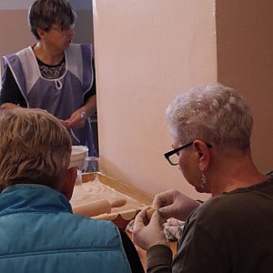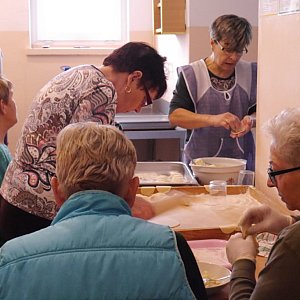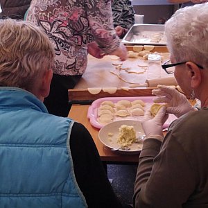 Po wspólnej modlitwie i podzieleniu się opłatkiem rozpoczęło się biesiadowanie przy kresowych potrawach - barszczu z uszkami, pierogach (ruskich i z kapustą oraz grzybami), sałatkach warzywnych, zestawach ryb (smażony karp i marynowane śledzie), wyśmienitą kutią i domowymi wypiekami.