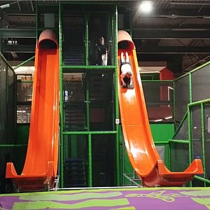 Kolejnym punktem programu był Go Jump – miejsce pełne energii i ruchu. Po rozgrzewce zaczęło się sportowe szaleństwo: salta, skoki, zjazdy na kocach z wysokich zjeżdżalni, koszykówka na trampolinach, gra w zbijaka ogromnymi piłkami, tor przeszkód i dżungla linowa. Dla wielu uczniów była to pierwsza wizyta w takim obiekcie, dlatego zabawa dostarczyła im mnóstwo pozytywnych emocji. Po krótkiej przerwie odwiedziliśmy Go Air, gdzie obowiązywały antypoślizgowe skarpetki. Gonitwa po dmuchańcach, walki na piankowe walce, skoki, zjazdy i ciekawe konkurencje sprawiły, że atmosfera była pełna śmiechu i radości. Na zakończenie odbyły się konkursy, w których uczniowie wygrywali słodkości, gadżety i lody – pełen emocji finał aktywnego popołudnia.