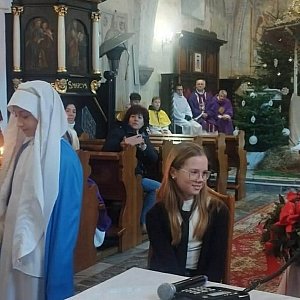 Zgodnie z miejscową tradycją jasełka wystawiane były zazwyczaj 6 stycznia, jednak już po raz drugi organizatorzy zdecydowali się zaprezentować je w ostatnią niedzielę Adwentu. Zależało im bowiem, aby przesłanie widowiska dotarło do wiernych jeszcze przed Bożym Narodzeniem – w czasie szczególnie ważnym: czasie refleksji, wyjaśniania sporów, kończenia waśni, wybaczania i pojednania. To najlepszy moment na prawdziwe zmiany i uświadomienie sobie, co w życiu ma największą wartość. W tym roku inscenizacja została rozegrana pośrodku kościoła, a jedynie szopka stanęła tuż przy ołtarzu, co jeszcze mocniej wciągało widzów w przeżywane wydarzenia. Uczniowie PSP w Olszance zaprezentowali historię Świętej Rodziny w realiach współczesnego świata. Maryja – w tej roli Michalina Rosińska – oraz Józef, którego zagrał Oliwier Tokarczyk, wędrowali pośród ludzi, poszukując dobrych serc. Prosili o tak niewiele: szklankę wody, kromkę chleba, chwilę schronienia. Niestety w zabieganym świecie, gdzie liczy się pieniądz, wygoda i własne przyjemności, nikt nie znalazł dla nich czasu. Zostali wyśmiani, poniżeni i odrzuceni. Nad Świętą Rodziną czuwali Aniołowie – Nina Dolińska, Malwina Burda i Marcelina Burda – którzy pomiędzy scenami przypominali, gdzie tak naprawdę dokonał się cud i co jest w życiu najważniejsze. Jedynymi, którzy okazali serce Bożej Rodzinie, byli bezdomni (Aleksandra Górska, Fabian Malinowski, Laura Berdychowska oraz Zuzanna Kownacka, mieszkający na dworcu głównym PKP. Choć sami mieli bardzo niewiele, potrafili się podzielić. Mała Asia (Julia Marć) oddała swój jedyny koc, a wszyscy ofiarowali miejsce do spania na kartonie. To oni pokazali prawdziwy sens Bożego Narodzenia – miłość, solidarność i bezinteresowność. Po narodzinach Jezusa przyszedł czas refleksji i uświadomienia sobie błędów. Sportowcy – Bartosz Górski i Natan Jankowski – oraz dziewczęta z dyskoteki – Ania Lum i Lidia Rudyk, a także recepcjonistki z pięciogwiazdkowego hotelu: Julia Kostka i Gabrysia Dorociak – zrozumieli, że zabrakło im wrażliwości i empatii. Z żalem przyznali, że pomoc tak naprawdę, nic by ich nie kosztowała, a mogła zmienić czyjeś życie.