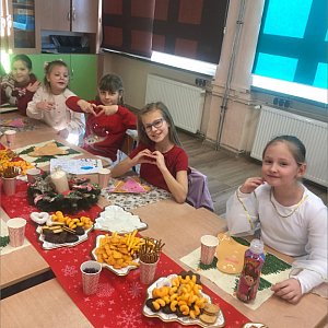 Zgodnie z wieloletnią tradycją PSP w Olszance, w ostatnim dniu przed przerwą świąteczną organizowane są wigilie klasowe. To wyjątkowy czas, na który uczniowie czekają z dużą radością. Obchody rozpoczynają się wspólnym oglądaniem jasełek przygotowanych przez kolegów i koleżanki pod kierunkiem katechetek: p. Beaty Kuny, p. Ewy Chruszczewskiej oraz pani Beaty Bajcer -opiekunki szkolnego chóru.