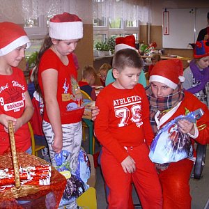 Mikołaj (w tej roli Jakub Gall) najpierw zawitał do klas najmłodszych, sprawdził wraz ze swoimi pomocnikami, czy wszystkie dzieci były grzeczne, posłuszne rodzicom i czy pilnie się uczyły. Dopiero po wysłuchaniu opowieści najmłodszych, wierszyków i piosenek wręczył upragnione prezenty- paczki ze słodkościami. Następnie odwiedzał kolejno klasy: czwartą, piątą i szóstą, nic się nie ukryło przed czujnym okiem Mikołaja. Święty był oczarowany tak miłym powitaniem i występem dzieci, w nagrodę rozdał paczki ze słodyczami, a niektórym dzieciom, zwłaszcza tym starszym podarował bilety do kina na filmy: "Hotel Transylwania II", "Bella i Sebastian II" oraz "Piotruś. Wyprawa do Nibylandii". Mikołaj nie zapomniał również o pracownikach administracji i obsługi, nauczycielach i dyrekcji. Wszystkim wręczył słodkości i złożył życzenia. Również Mikołaj został obdarowany przez dzieci, otrzymał podziękowania oraz życzenia długiego zdrowia. Wszyscy w tym dniu otrzymali nagrody. Radości nie było końca.