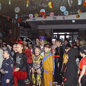 Podczas wtorkowego zimowego wieczoru - 19 stycznia, odbył się tak długo oczekiwany przez uczniów Szkoły Podstawowej w Olszance, bal karnawałowy. Zabawa ta jest okazją do wspólnych pląsów i spotkania się całej społeczności szkolnej SP. W tym dniu ubrany w kolorowe serpentyny, kwiaty i balony hol szkolny zamienił się w zaczarowaną krainę pełną: wróżek, czarownic, czarodziejów, księżniczek, kowbojów, duchów, karateków, policjantów, żołnierzy, motylków, kotków i innych barwnych postaci z kreskówek i bajek. Przy dźwiękach skocznej muzyki i utworach znanych wykonawców dzieci mogły pobawić się ze szkolnymi kompanami, a także swoimi wychowawcami. Rozrywkę uczestnikom balu zapewniła grupa animatorów, która nikomu nie pozwoliła się nudzić. Dzieci tańczyły twista, rock and rola, sambę, makarenę, kaczuszki i świetnie się przy tym bawiły. W tańcu wirowały księżniczki, czarownice oraz różne postacie z bajek i książek. Solo, w parach, w kółkach i wężykach wszyscy bawili się wspaniale. Uczniowie chętnie uczestniczyli w konkursach prowadzonych przez animatorów, a były one nie tylko zabawne, niektóre zaskakujące i nietypowe. Bal trwał trzy godziny, za sprawą dobrze dobranej muzyki i wspaniałej atmosfery wszyscy mieli ochotę zostać dłużej. Ostatnie piosenki bisowano po kilka razy. Każdy tańczył do utraty tchu, by nie zmarnować szansy na karnawałowe szaleństwo w gronie przyjaciół. Uczniowie podczas zabawy mieli możliwość zaprezentowania swoich umiejętności tanecznych i wokalnych. W czasie balu odbyła się również sesja zdjęciowa, podczas której zostały uwieńczone na pamiątkę wspaniałe przebrania naszych wychowanków. Aby zregenerować swoje siły i nabrać nowej energii do karnawałowych szaleństw podczas krótkiej przerwy wszystkie dzieci udały się na poczęstunek - słodkie i przepyszne pączki z olszańskiej piekarni pani Barbary Wróbel.. Już od dziś z niecierpliwością czekamy na następną zabawę karnawałową w naszej szkole. Będzie zapewne wesoło i kolorowo.