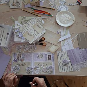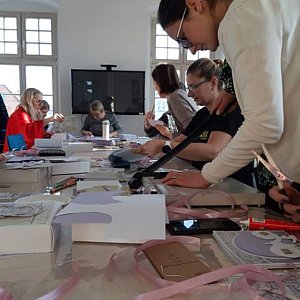 W sobotę 25 stycznia w Dziale Edukacji Regionalnej odbyły się warsztaty scrapbookingowe "Album w pudełku". Z przygotowanych materiałów (papierów scrapbookingowych, baz albumowych, elementów dekoracyjnych i dodatków) każda z uczestniczek mogła wyczarować urokliwy "album harmonijkę" w odcieniach lawendy.