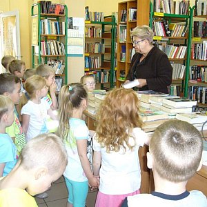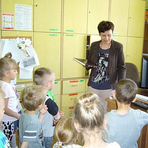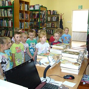 Dzieci zapoznały się z działalnością biblioteki i pracą bibliotekarza :odwiedziły wypożyczalnię dla dorosłych, czytelnię i dział gromadzenia i opracowywania zbiorów. Na koniec spotkania dzieci wysłuchały bajki pt. "Jaś i Małgosia" i "Kot w butach".