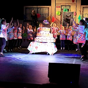 Sala widowiskowo-sportowa w Żłobiźnie za sprawą imponującej scenografii przeistoczyła się w teren szkoły i placu przyszkolnego. Młodzi artyści z wielkim zaangażowaniem ukazywali różne sytuacje z życia współczesnych dzieci. Gra świateł, piękne układy choreograficzne, stroje, utwory wokalne - specjalnie przygotowane na spektakl - to tylko niektóre elementy, które zachwyciły widownię. Głównym przesłaniem widowiska było to, że tylko wspólnym działaniem można wykonać nawet najtrudniejsze zadania.