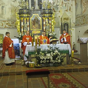 Mszy świętej, która zakończyła Misje Święte w Małujowicach, przewodniczył rektor Papieskiego Wydziału Teologicznego ks. prof. Włodzimierz Wołyniec. Na pamiątkę misji, ksiądz profesor poświęcił nowe ołtarze boczne oraz relikwiarium w Sanktuarium.