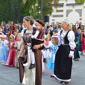 Burmistrz uroczyście przekazał na ręce błazna (w tej roli Zuzanna Zazulin) klucz do zamku, dzięki czemu na dziedzińcu zagościły psoty, tańce i swawole. Przechadzając się po piastowskim grodzie wraz z błaznem można było przyjrzeć się z bliska jego mieszkańcom. Mincerz wybijał monety, skryba opisywał dzieje Piastów dla potomnych, kupcy z zamorskich krain oferowali naczynia i wonne oleje, straganiarze warzywa, hafciarki wielobarwne wstążki, piekarze wypieki, a nadworni artyści przygrywali na złotych flecikach. W tych rolach znakomicie spełniały się dzieci z Publicznego Przedszkola nr 10, wręczając w urodzinowym darze księżniczce Zofii swoje wyroby, składając pokłon i odtańcowując dworskie tańce. Przybyli również kunsztownie odziani mieszczanie, którzy stanęli w szranki konkursu na najzacniej ubraną rodzinę. Tytuł zwycięzców przypadł rodzinie Państwa Kończyło, na czele z Bernadettą Kończyło, która dla całej swojej rodziny zwycięskie stroje uszyła. Ponieważ dog książęcy jak dotąd był bezimienny, a atmosfera sprzyjała brataniu się z ludem, książę Jerzy zapragnął by brzeżanie przedstawili swoje propozycje na imię dla jego pupila. Lud chętny do zabawy przyjął również zaproszenie do tańca dworskiego wraz dwórkami ( w tej roli zespół taneczny Biedronki ), prowadzonego przez Annę Glińską - instruktorkę Klubu 1 Pułku Saperów. W międzyczasie do tańca i biesiadowania przy wypiekach mistrza Kostrzewy, przygrywali mistrzowie muzyki renesansowej, zespół Camerata Cracovia, przybyły na uroczystość z Grodu Wawelskiego. Na zakończenie książę, księżna i mała księżniczka, ukazując po raz kolejny dobrotliwą stronę ich majestatu, przystąpili do wspólnej zabawy z ludem. Królewski błazen zajął miejsce na tronie i odśpiewał "Nową baśń" o wielkiej potędze wyobraźni i wiary w dobre zakończenie każdej opowieści, nawet tej z pozoru bajki nie przypominającej.