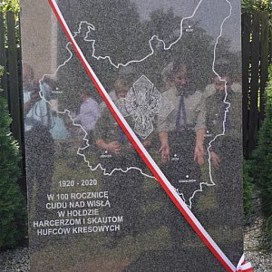 Po mszy nastąpiło odsłonięcie pomnika - tablicy ku czci Harcerzy i Skautów Hufców Kresowych II Rzeczypospolitej, pod którą poszczególne delegacje złożyły wiązanki kwiatów, a harcerze zapalili znicze pamięci.