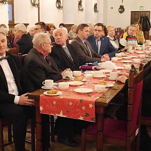 Po wystąpieniach i życzeniach od gości przyszedł czas na poświęcenie opłatków, którego dokonali - kapelan kresowiaków ks. prałat Bolesław Robaczek oraz pastor parafii ewangelicko - augsburskiej św. Łukasza w Brzegu ppłk Sławomir Fąfara. Żyjemy w ciekawych czasach, powtarzając wypowiedziane wcześniej przez Alicję Zbyryt słowa, ks. B. Robaczek dodał, by przy składaniu sobie życzeń nie zapomnieć o banalnych może słowach - życzmy sobie zdrowia i pomyślności. Marzenia ma każdy człowiek i powinien je mieć, bo bez nich stanie się człowiekiem przyziemnym bez żadnej wiary i wartości. Pastor Fąfara żartobliwie zapytał zebranych - gdzie urodził się Pan Jezus, w Betlejem czy na Łyczakowie? Zapewnił jednak, że w nas. Zaczęło się łamanie opłatkiem, składanie życzeń i wspólne kolędowanie przy aktywnym wsparciu artystów z Klubu Wojskowego pod kierunkiem Jany Koronkiewicz. Nie obyło się bez wspomnień, deklamacji wierszy kresowych i rozmów o sprawach bieżących, jak i tych dotyczących Kresów i lwowiaków.