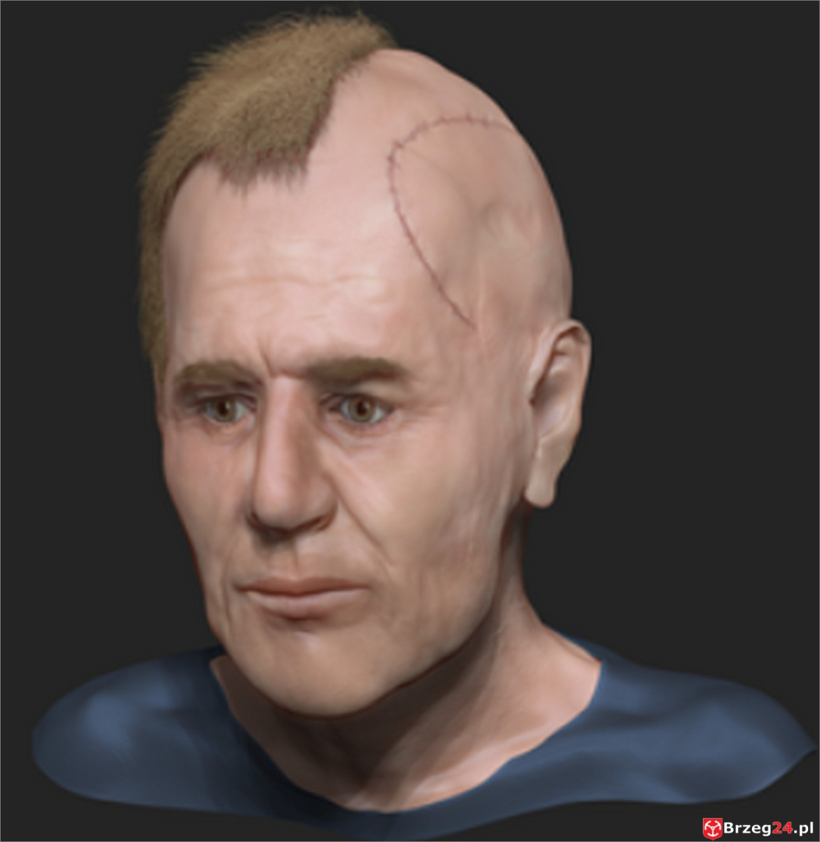 Wydział Kryminalny Komendy Powiatowej Policji w Brzegu prowadzi postępowanie identyfikacyjne dotyczące czaszki ludzkiej ujawnionej 23 marca 2021 roku na jednej z posesji w Kościerzycach. Do dziś nie udało się ustalić, kim był mężczyzna, dlatego śledczy zdecydowali się na publikację portretu przyżyciowego.