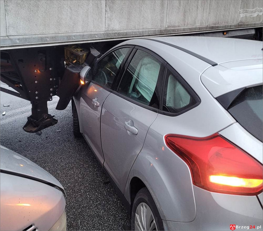 Do zdarzenia doszło dzisiaj, 24 lutego tuż przed godziną 6:30 na drodze krajowej nr 39. W wypadku uczestniczyły trzy pojazdy. Jak ustalili pracujący na miejscu policjanci, 21 letni kierowca forda nie dostosował prędkości do panujących warunków. Najpierw zderzył się z mercedesem, a następnie wjechał pod naczepę ciężarówki.