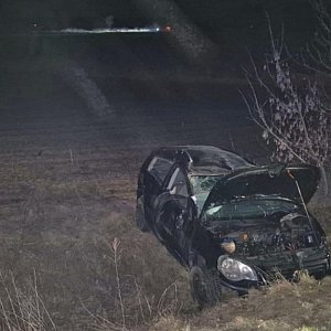 Groźny wypadek na drodze z Lewina Brzeskiego do Magnuszowic. Po zderzeniu dwóch samochodów osobowych jeden z pojazdów wypadł z jezdni i dachował w pasie zieleni. Jedna osoba została przewieziona do szpitala.