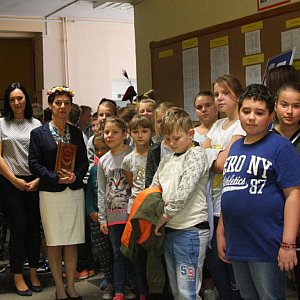 6 września na trzeciej godzinie lekcyjnej wokół wystawki zgromadzili się uczniowie i nauczyciele. Pani Teresa Medyńska - Aporowicz przypomniała krótką historię Narodowego Czytania, wprowadziła w tematykę utworu. Szkolne czytanie poprzedziło wysłuchanie muzycznej interpretacji fragmentu "Wesela" w wykonaniu Marka Grechuty. Następnie pani dyrektor Lucyna Bończak i p. Kordian Zamojski przeczytali scenę 21 z II aktu dramatu, rozmowę Poety z Rachelą, córką bronowickiego karczmarza. Kontynuowanie lektury odbywało się w klasach. Czytali nie tylko nauczyciele i uczniowie, ale również niepedagogiczni pracownicy szkoły oraz chętni rodzice. W kl. IIB gimnazjum w rolę Księdza wcielił się ks. Paweł Krukowski, a w kl.5 b partie Zosi i Haneczki czytały sekretarz szkoły p. Beata Ożóg i jedna z mam p. Monika Łobodziec.