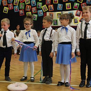 Program artystyczny, prowadzony przez panią Dorotę Wojciechowską oraz uczniów klas trzecich i czwartych, pozwolił na zaprezentowanie się każdemu wychowankowi klasy pierwszej. Nie zabrakło w nim wierszy, tańców oraz piosenek tematycznie związanych z obowiązkami ucznia, bezpieczną zabawą, radością uczenia się i poznawania świata. Odważni pierwszoklasiści do kulminacyjnego tańca zaprosili również panie: dyrektor i wicedyrektor, które wykazały się poczuciem humoru i niezłą kondycją. Uczniowie wraz z nauczycielami udowodnili, że w szkole nie tylko się uczymy, ale również możemy marzyć i bawić się. Rodzice dumni ze swoich pociech nagradzali dzieci gromkimi brawami.