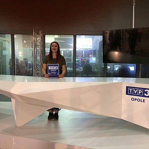 W progach opolskiej telewizji przywitała nas pani Monika Matuszkiewicz - kierownik produkcji, która w sposób merytorycznie kompetentny z dużą dozą życzliwości i sympatii opowiedziała jak wygląda telewizja od kuchni. Program wycieczki obejmował wizytę w studiu telewizyjnym, reżyserce, garderobie i pomieszczeniach archiwum.
