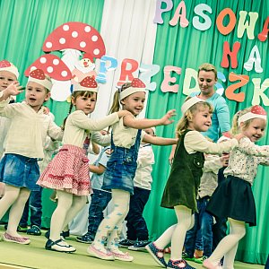 W programie uroczystości Pasowania na Przedszkolaka znalazły się: wiersze, piosenki, pląsy taneczne, zabawa rytmiczna oraz instrumentacja piosenki z wykorzystaniem drewnianych instrumentów. Dzieci wspaniale zaprezentowały swoje umiejętności, które zdobyły w przedszkolu, w tak krótkim czasie, dając tym samym dowód, jak dużo już potrafią. Podziwiać można było ich odwagę i śmiałość, radość i dumę z pokonanej tremy. Otuchę, wsparcie i pewność siebie dodawały gorące brawa licznej publiczności.