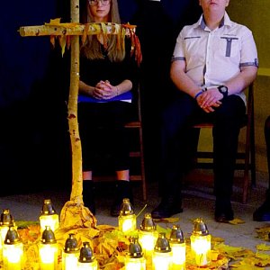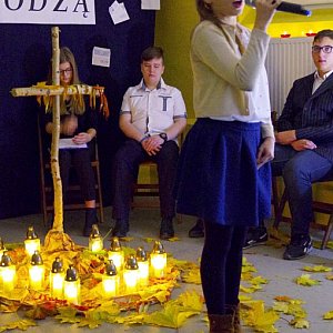 Listopad kojarzy nam się ze świętem Wszystkich Świętych, z Dniem Zadusznym, z pamięcią o tych, którzy odeszli. Piękny montaż literacko-muzyczny przygotowany przez nauczycieli religii: ks. Pawła Krukowskiego i p. Jolę Kurowską przypomniał o życiu jako największej wartości i najpiękniejszym darze który otrzymał człowiek. Przemijanie, śmierć to tematy trudne - zwłaszcza dla młodych ludzi. Dlatego tak ważne jest, by przybliżać je uczniom, uwrażliwiając ich na to, co w życiu najważniejsze, co nadaje mu wartość i sens. Co roku w ostatnie dni października klasy piąte, szóste, siódme oraz uczniowie gimnazjum biorą udział w tym niezwykłym spotkaniu, by móc zatrzymać się na chwilę i pomyśleć o sprawach, na które często na co dzień nie mamy czasu. A przecież każdy z nas kiedyś kogoś pożegnał, stracił. Listopad to miesiąc naszych częstych odwiedzin na cmentarzach, modlitw za ludzi kochanych, znajomych lub całkiem obcych, którzy przeżyli swoje życie i po których zostały już tylko wspomnienia, a czasami ogromna tęsknota i poczucie żalu. To też czas na wspomnienie bohaterów - ludzi, których czyny miały wpływ na losy naszej Ojczyzny.