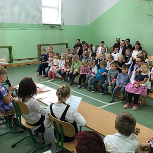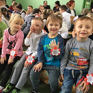 Lekcję historii zakonczono wspólnym śpiewaniem polskich pieśni patriotycznych, które natchneły uczestników spotkania prawdziwym duchem narodowym. Śpiewali uczniowie, przedszkolaki, grono pedagogiczne wraz z zaproszonymi gośćmi.