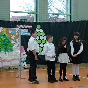 Nasi uczniowie pod bacznym okiem swoich nauczycieli przygotowali liczne występy. I tak mieliśmy okazję obejrzeć inscenizację: ,,Starej bombki" czy ,,Kopciuszka"; posłuchać o prezentach, które są najodpowiedniejsze dla naszych najbliższych czy wspólnie pokolędować. Na zakończenie spotkania- jak to w święta bywa był czas na prezent- którego rozpakowywaniem zajęli się nasi rodzice- w konkursie na wesoło.