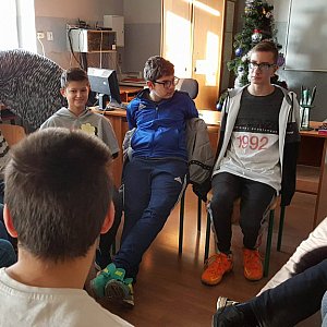 Zwróciliśmy uwagę również na to, że jeśli ktoś nie jest całkowicie sprawny, to nie oznacza że nie może rozwijać swoich zainteresowań. Przykładem tego jest Stephen William Hawking, który ma sparaliżowaną większą część ciała, a jest znanym astrofizykiem, kosmologiem i fizykiem teoretykiem. Po wspólnych rozmowach przeszliśmy do wczuwania się w sytuację osób niepełnosprawnych. Pierwszym zadaniem było pokonanie wyznaczonej trasy po szkole z chustką na oczach oraz rozpoznanie przedmiotu, który dostało się do rąk. Dla wielu osób to zadanie nie było trudne, ale tylko dlatego, że chodzimy do tej szkoły od wieku lat i doskonale znamy jej topografię.