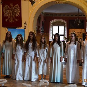 Na scenie wystąpiło kilkudziesięciu aktorów - od pierwszoklasistów, po uczniów ostatnich klas gimnazjum - którzy przedstawili historię narodzenia Pana Jezusa i poprowadzili wspólne śpiewanie kolęd. Najmłodszych aktorów przygotowały do kolędowania nauczycielki: Anna Krupa i Beata Skalska.