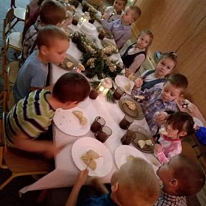 Rozbrzmiewały piękne kolędy , dzieci i panie składały sobie życzenia. Najlepsze, co możemy zrobić dla siebie i innych, to spędzić ten czas w rodzinnej atmosferze, umocnić łączące nas więzi - aby nasze dzieci w rodzinnym gronie czuły się bezpiecznie i swobodnie. W dobrym przeżyciu Bożego Narodzenia pomaga świadome pielęgnowanie tradycyjnych zwyczajów i rytuałów świątecznych. W naszej placówce od lat kultywujemy te piękne zwyczaje.