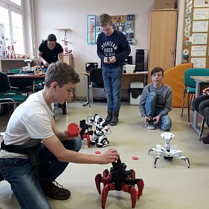 Kolejne zajęcia dotyczyły zagadek logicznych i obsługi robotów. Wszyscy przyznali, że łamigłówki, które na początku wydawały się łatwe, wcale takie nie były. Nasza koleżanka, jako pierwsza rozwiązała zagadkę polegającą na ułożeniu dwóch połączonych ze sobą jeźdźców na koniach. Rebusy sprawiły nam niemałe kłopoty, ale przebrnęliśmy również przez te trudności. Po części matematycznej udaliśmy się do pracowni robotyki, gdzie mogliśmy sterować robotami.