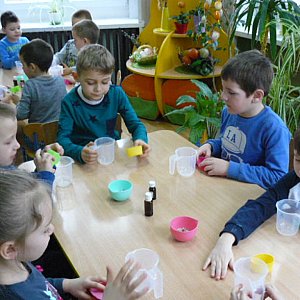 Zabawa była wspaniała, niezwykle twórcza, rozwijająca kreatywność oraz zdolność manualną. Już wkrótce wykonane mydełka będą wielkanocnym i pachnącym upominkiem dla najbliższych.