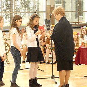 Na widowni wraz z uczniami i nauczycielami zasiedli: Tomasz Witkowski - Zastępca Burmistrza Brzegu, kombatanci i przedstawiciele środowisk kresowych: Alicja Zbyryt, Alicja Heflich, Józef Duda, dr Jan Majewski, a także Przewodnicząca Rady Rodziców - Marzena Walczak. W imieniu Burmistrza Brzegu pan Tomasz Witkowski złożył społeczności naszej szkoły życzenia pomyślności i sukcesów. Na zakończenie uroczystości zaproszeni goście wpisali się do pamiątkowej Księgi Patronów, a następnie zostali obdarowani przez panią dyrektor, Beatę Kulbakę, drobnymi upominkami oraz ugoszczeni poczęstunkiem, na który składały się produkty opatrzone logo Fair Trade (Sprawiedliwego Handlu), którego ideę aktywnie wspiera nasza szkoła.