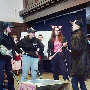 Nasz festiwal pozwolił więc odkryć aktorskie, reżyserskie i plastycznetalenty uczniów Ekonomika i zagwarantować dobrą zabawę publiczności wypełniającej aulę po brzegi. Po podliczeniu punktów ze wszystkich sześciu konkurencji, Puchar Przechodni Zespołu Szkół Ekonomicznych ostatecznie przypadł ambitnej klasie pierwszej technika logistyka, która brawurowo sparodiowała bajkę o Pinokiu. Zaraz za nią uplasowała się klasa trzecia technika organizacji reklamy i technika architektury krajobrazu z bajką o trzech świnkach uwielbiających kebab (uczennice tej klasy były również autorkami wspaniałych baśniowych dekoracji naszego festiwalu). Trzecie miejsce w Ekonomaliach zajęła klasa trzecia technika logistykaprzezabawnie parodiująca Shreka.